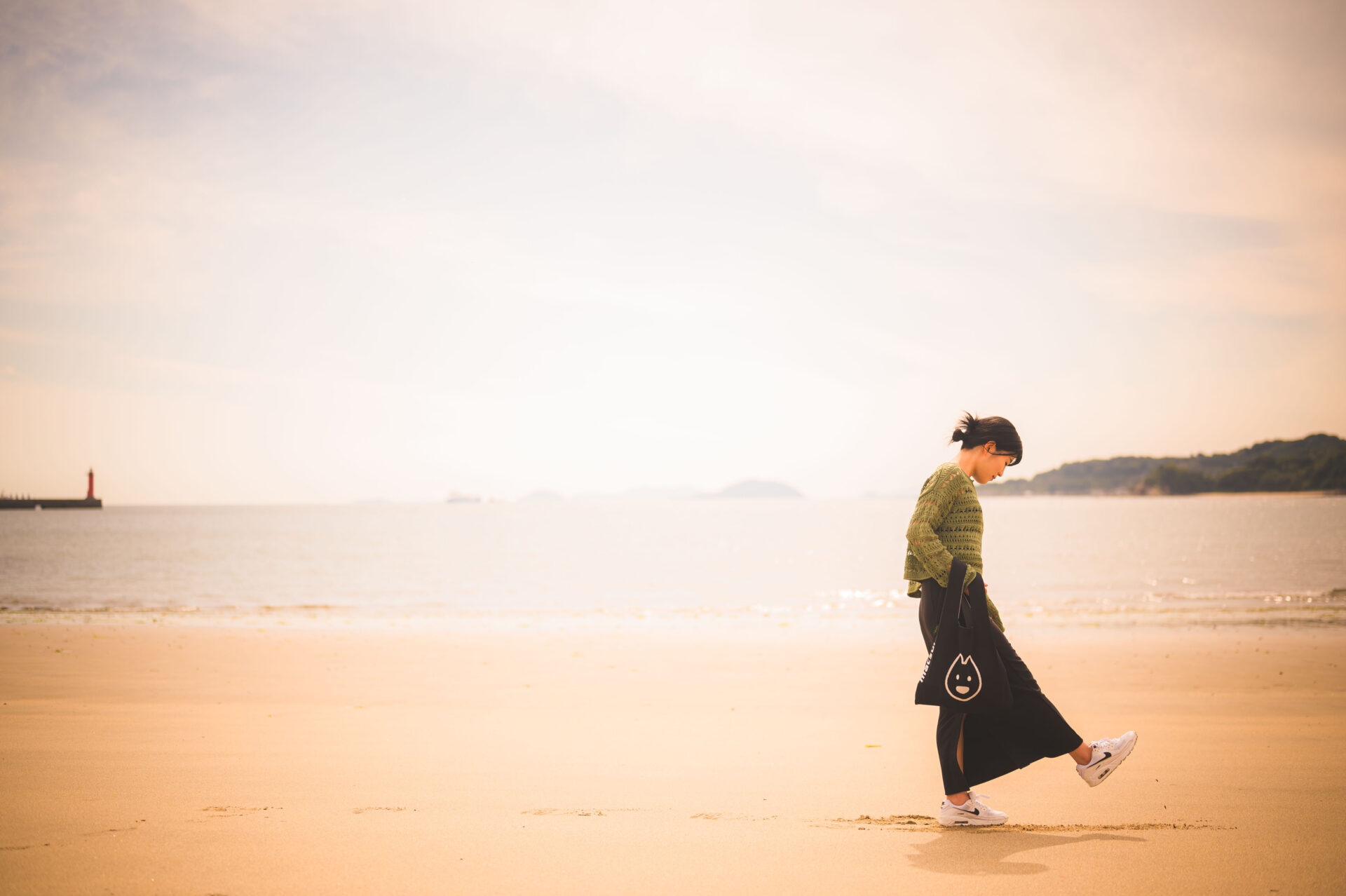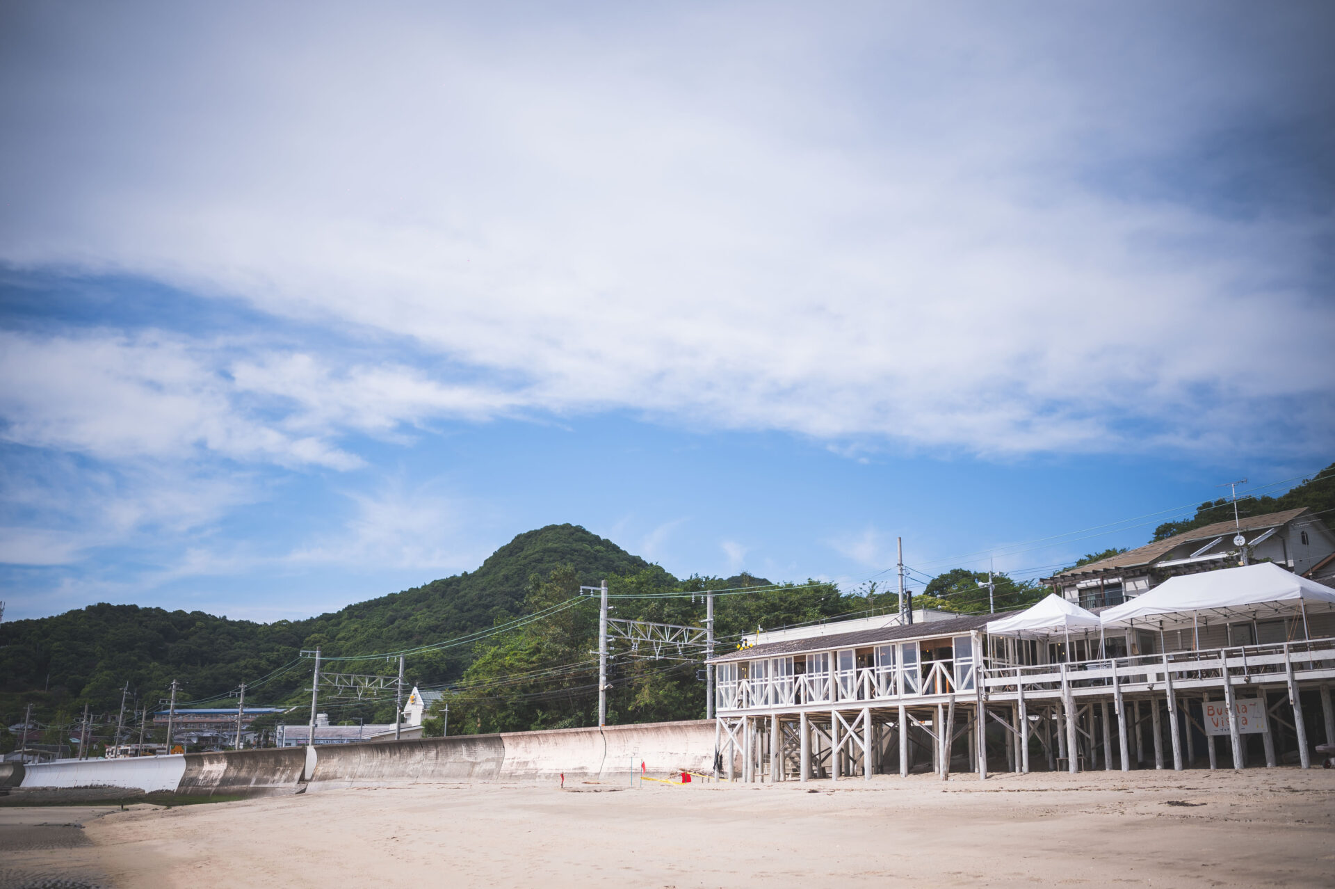 Once you pass through the ticket gates, the sea awaits. Beyond the fence of IYOTETSU TAKAHAMA Line Baishinji Station, a beautiful sea spreads out before you. Step onto the sandy beach, surrender to the sound of the waves and the scent of the sea.